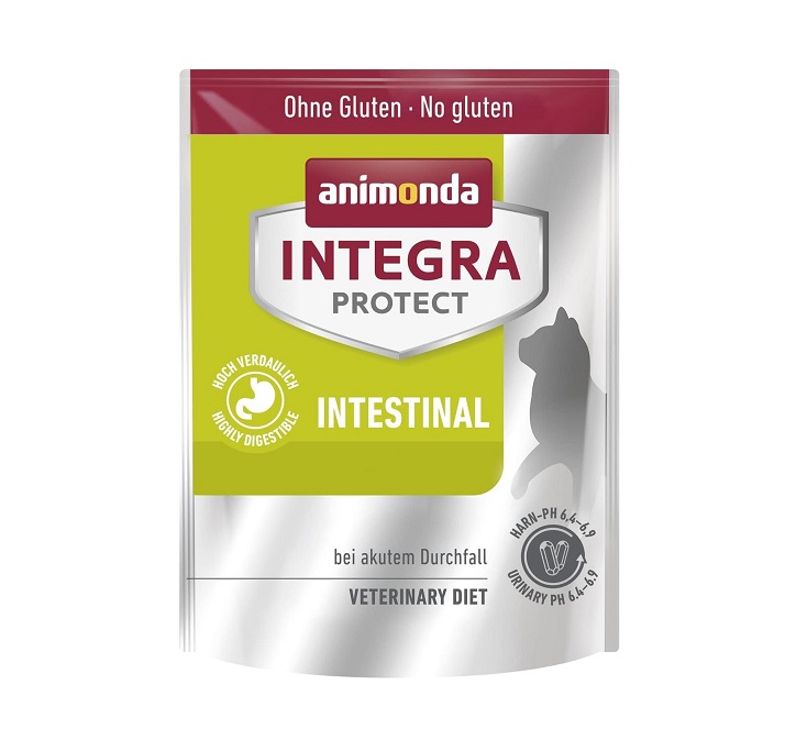 Suva hrana za mačke sa dijarejom ne sadrži gluten. Sa povećanim sadržajem natrijuma i hlorida obezbeđuje da se nadoknade gubici izazvani dijarejom. INTEGRA PROTECT Intestinal dobro jedu i mačke sa gastrointestinalnim problemima u ovoj osetljivoj i stresnoj situaciji.