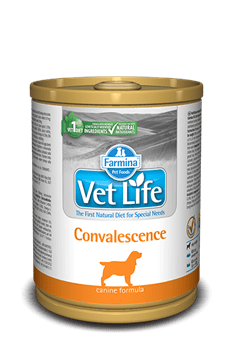Farmina Vet life Convalescence je kompletna dijetetska hrana formulisana za nutritivni oporavak odraslih pasa. Takođe je indikativna u tretmanu jedinki sa organizmom oslabljenim specifičnim i nespecifičnim oboljenjima.